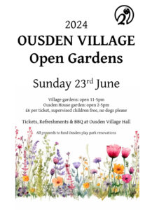 Ousden Open Gardens will be taking place on the 23rd June 2024. Many of the village gardens will be open from 10am to 5pm, including the award winning Dip-on-the-Hill garden. Ousden Hall garden will be open from 2pm-5pm. Refreshments will be available at the Village Hall.